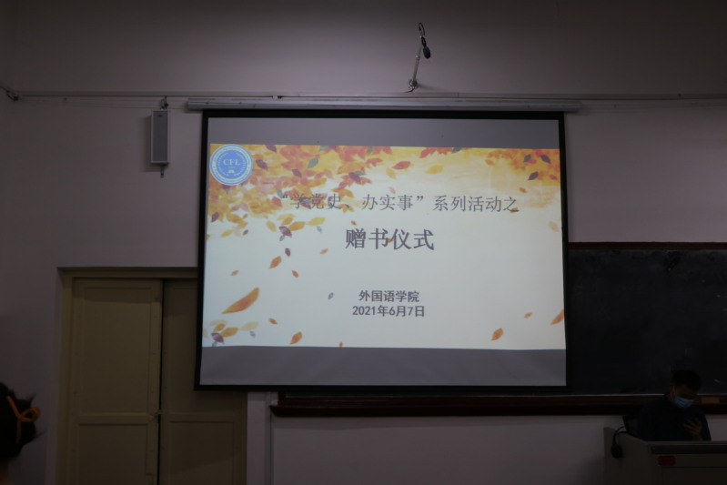 6月7日20:00,lol电竞比分网 在10216教室开展“学党史、办实事”系列活动之赠书仪式。lol电竞比分网 党委副书记万洪波、副院长张建磊、英语系主任唐彬、辅导员李彪,和2020级全体学生参加了本次活动。