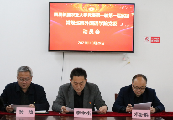 10月29日下午,四届新疆农业大学党委第一轮第一巡察组常规巡察lol电竞比分网 党委动员大会在电竞比分 三楼会议室召开。校党委第一巡察组组长邓新胜做动员讲话,校党委巡察工作领导小组办公室主任李全棋提出工作要求,lol电竞比分网 党委书记畅通主持会议并代表lol电竞比分网 党委做表态发言。