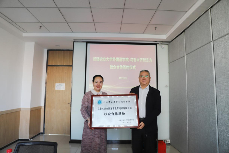 为进一步提升外语人才培养质量,推进校企合作,3月2日上午,lol电竞比分网 党委书记畅通、党委副书记万洪波、英语专业系主任唐彬及辅导员裴雨赴乌鲁木齐新东方总部,与新东方签署了校企合作协议并举行了基地授牌仪式。乌鲁木齐新东方校长乔雅玲、党支部书记李艳、人力资源部总监马小棠、国际教育中心&大学事业部总监苏晓霞、国际教育中心运营经理王君洁出席了签约仪式。
