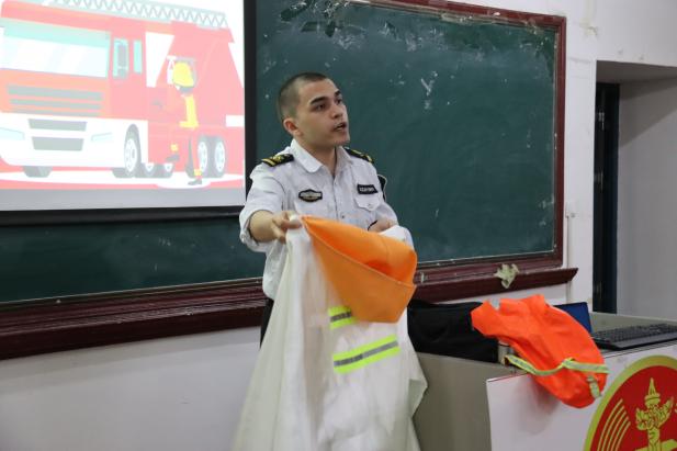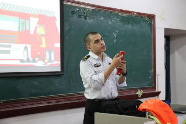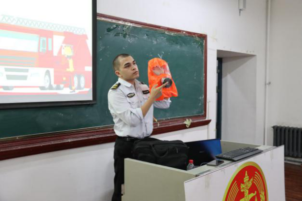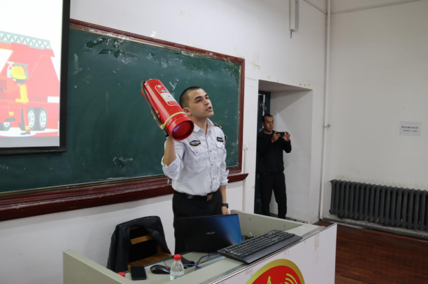 讲座邀请到乌鲁木齐市走进消防知识宣传中心高级教员伊布拉依·艾尔肯教官,教官从消防安全认识教育和消防设备使用两部分开展了本次专题讲座。一是通过讲授自身实战经验让师生快速接受消防方面的知识,认识到消防安全在工作和生活中的重要性,做好火灾的预防应对。二是向师生展示了五种灭火工具的使用方法、适用范围及年限,将理论知识转化为实践能力。