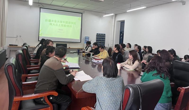 杨禹欣教师现场教学,从平台基本应用入手,以其主讲的《英语泛读Ⅱ》课程为例,从建课、课堂活动、作业及考试、数据导出四个方面,对秾大云上的常用功能进行了系统讲解和演示。期间,教师们就实际使用过程中遇到的问题和困惑进行了提问和探讨。此次活动深化了教师对网络教学平台功能和作用的理解,提高了教师运用现代教育技术的能力,为外语深度混合式教学奠定了基础。