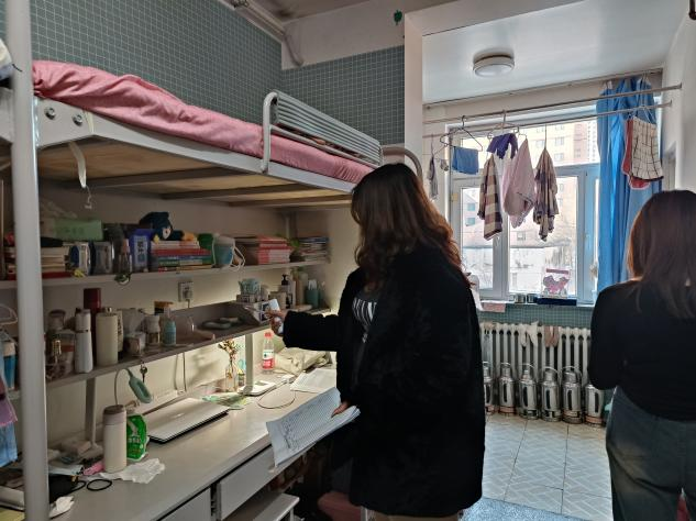 主要对宿舍内是否存放电动自行车(电池)、电动滑板车等大容量储电设备,易燃易爆物品,大功率电器及宿舍卫生情况等进行全面细致检查。