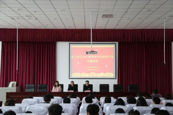 冰雪消融,万物复苏,莘莘学子,携梦归来。新学期伊始,lol电竞比分网 党委副书记万洪波,教学秘书黄璐以及辅导员李彪于3月9日16:00前往亚心校区,在图书馆讲堂为2021级英语专业全体学生开展英语专业培养计划及安全教育讲座。