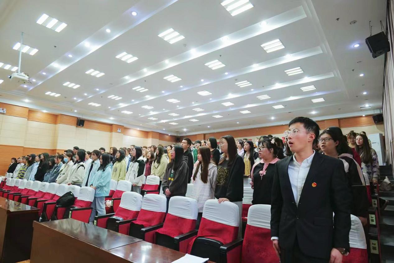 党委书记畅通老师,党委副书记、院长张建磊老师,副院长王婷老师,研究生英语系主任陈玲老师,纪委委员闫兴红老师,大学英语系主任刘艳丽老师,“三进两联一交友”教师代表以及全体学生出席本次大会。大会在庄严的国歌声中拉开帷幕,气氛热烈而庄重。
