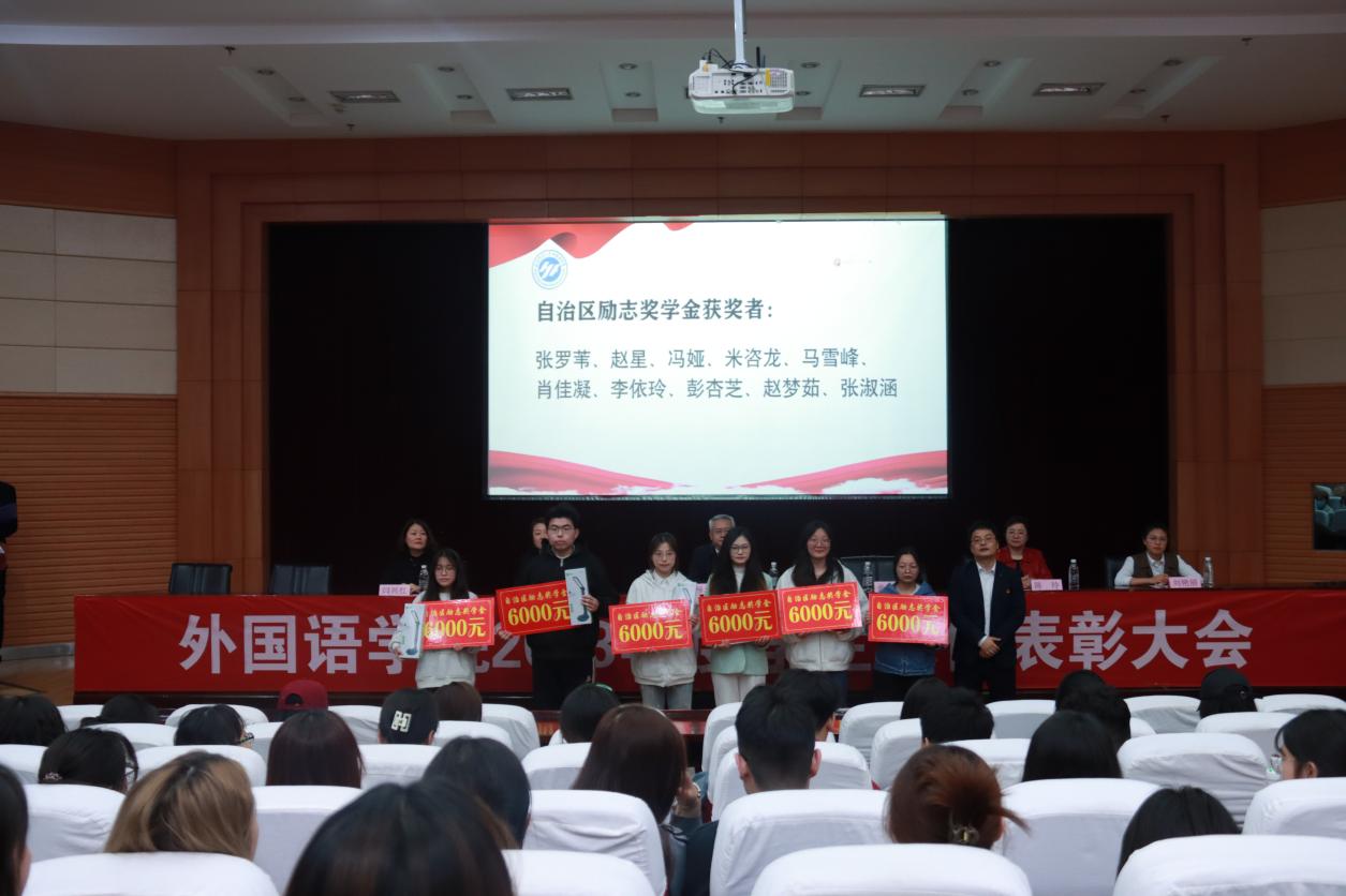党委副书记、院长张建磊老师为“自治区人民政府高校励志奖学金”获得者颁奖