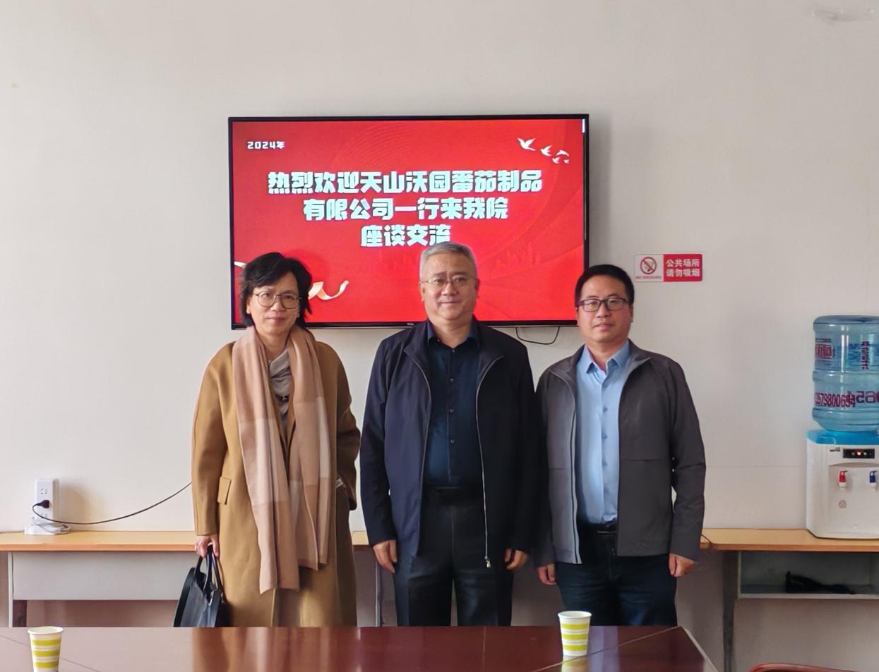 3月8日,lol电竞比分网 党委书记畅通、辅导员张文乐与新疆天山沃园番茄制品有限公司董事长许亮和销售部经理雷虹,就为大学生缓解就业困难,鼓励耕读教育以及日后的长期合作等内容举行座谈交流。