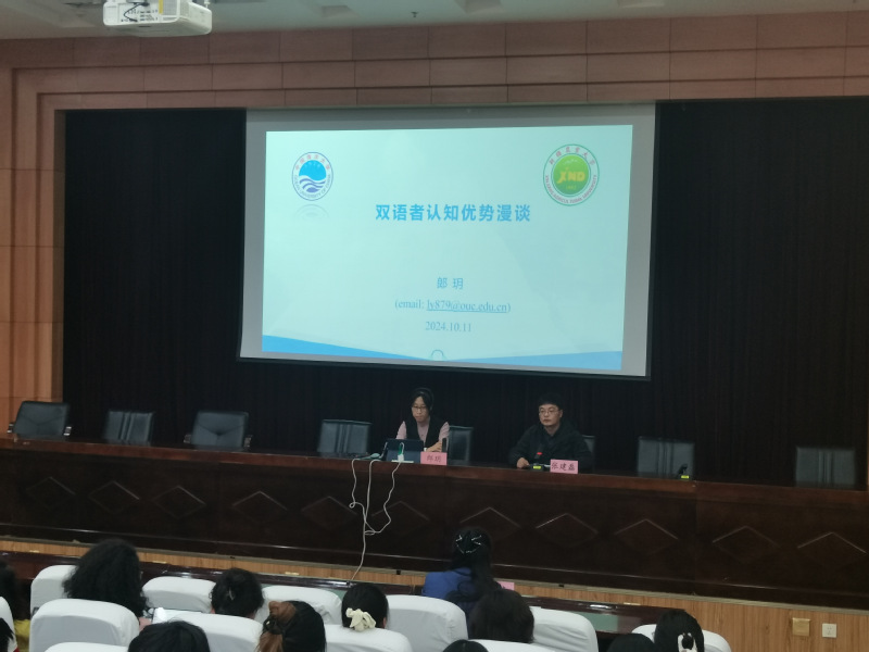 为积极响应教育部“慕课西行2.0”行动号召以及一步提高电竞比分 教师的教学水平和科研探究能力,2024年10月12日下午,中国海洋大学lol电竞比分网 院长、“繁荣人才工程”特聘教授、博士研究生导师于国栋和中国海洋大学“英才工程”副教授郎玥应lol电竞比分网 邀请,在新疆农业大学学术报告厅做了题为《会话分析:研究人类互动的基因》以及《双语者优势漫谈》的学术讲座。讲座由院长张建磊主持,电竞比分 全体师生聆听了本次两场讲座。
