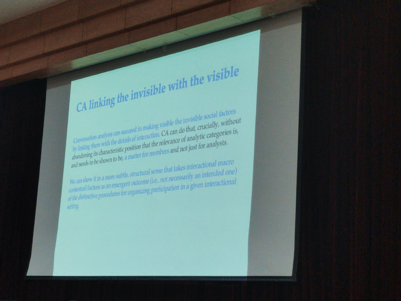 于国栋院长长期致力于会话分析的学习与研究,他首先介绍了会话分析在基础会话分析研究和应用会话分析研究中的相关研究领域,此外,他强调会话分析常用的语料是自然会话,指出语料分析要通过符号进行客观呈现,来发现社会成员共享的会话方式。于院长的讲座内容贴近生活,扎根专业领域,从研究医患关系入手,探究人类话语互动在语用学方面的启示,师生们受益匪浅,随即响起了热烈的掌声。