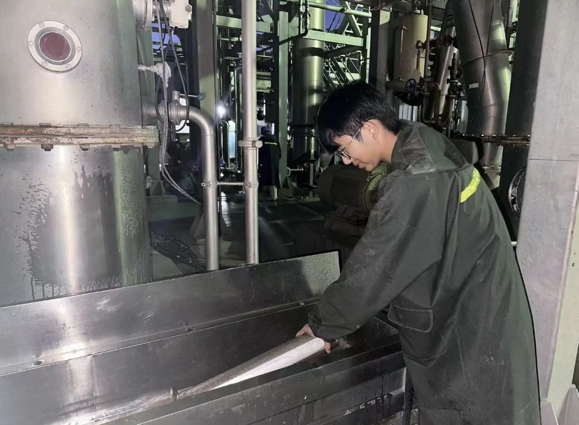 被分配至蒸发助理岗位,跨界挑战虽大,却难挡他前进的步伐。在师傅的耐心指导下,从穿戴工服的安全教育,到精准记录仪器读数、细心清洗设备,每一步都见证了他的成长与蜕变。他学会了独立操作,更在师傅身上领悟到了“匠人精神”的真谛——无论岗位大小,皆需精益求精,为生产贡献自己的力量。