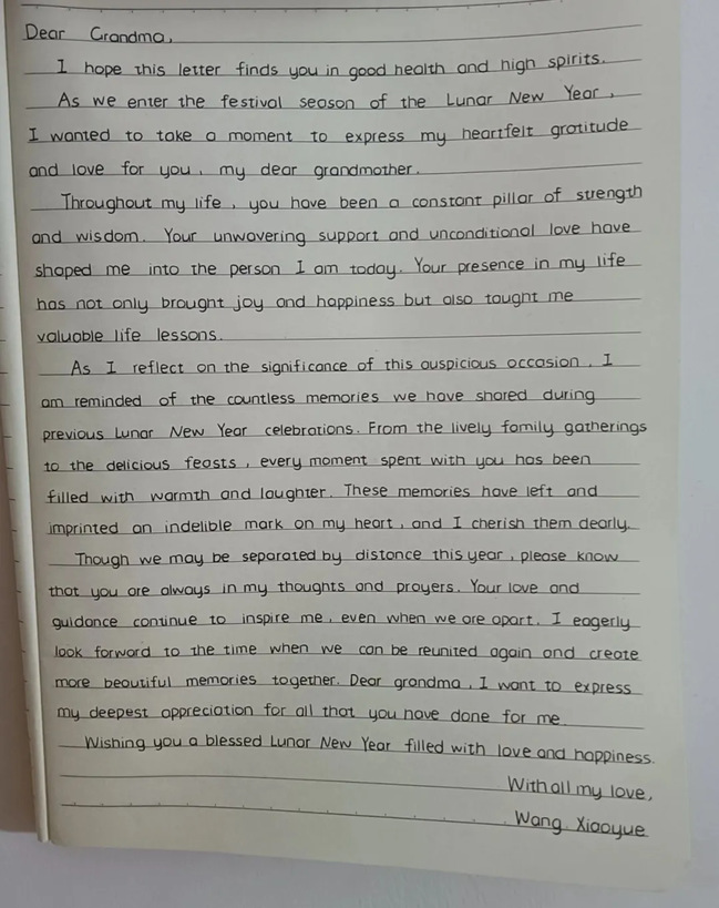 你可察觉,对联窗花缀上大门小窗;你可见到,万千烟火载愿掠过窗间;你可闻到,浓浓年味包围街头巷尾;你可尝到,汤圆饺子团圆家家户户。年味牵出你心中的字字句句,谱成一封新年信,写出对你自己的期许,写下给好友最真挚的关怀,绘出对老师父母的感恩与祝福。