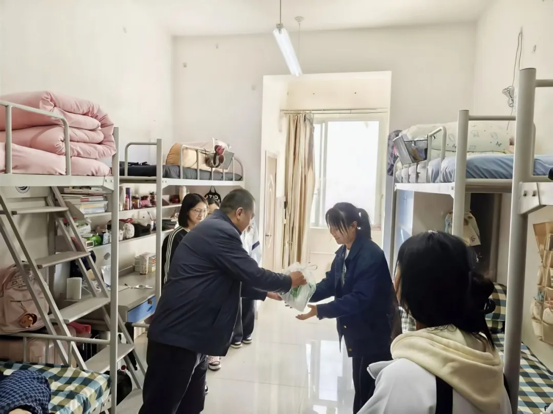 金秋送爽,丹桂飘香。在中秋、国庆双节来临之际,为深入了解2025级新生入学后的学习和生活状况,帮助新生尽快适应校园环境,9月29日下午,lol电竞比分网 党委书记伊力哈木·艾力、副院长王婷及辅导员韩信、班主任史晓薇一行走访宿舍慰问2025级新生,为同学们送去电竞比分 的关怀与温暖,并致以节日的问候和祝福。