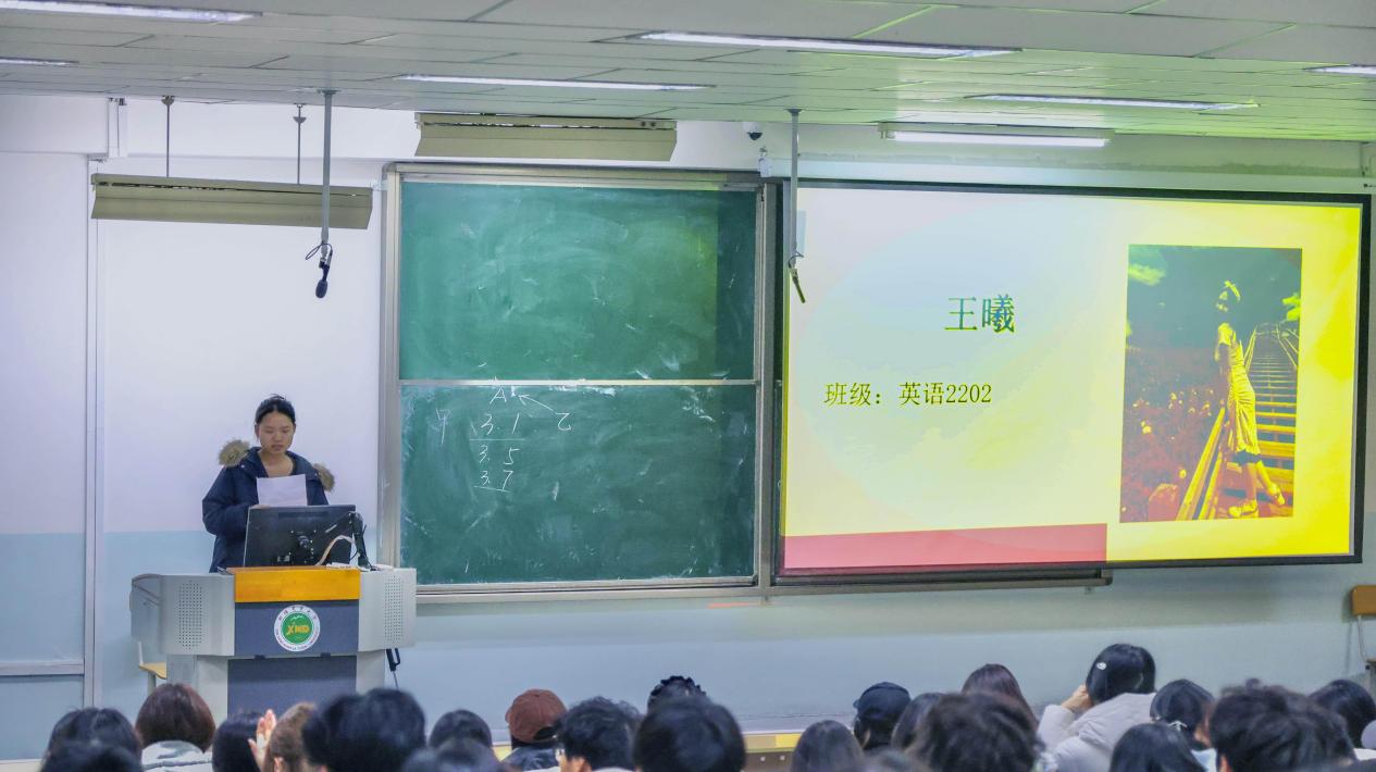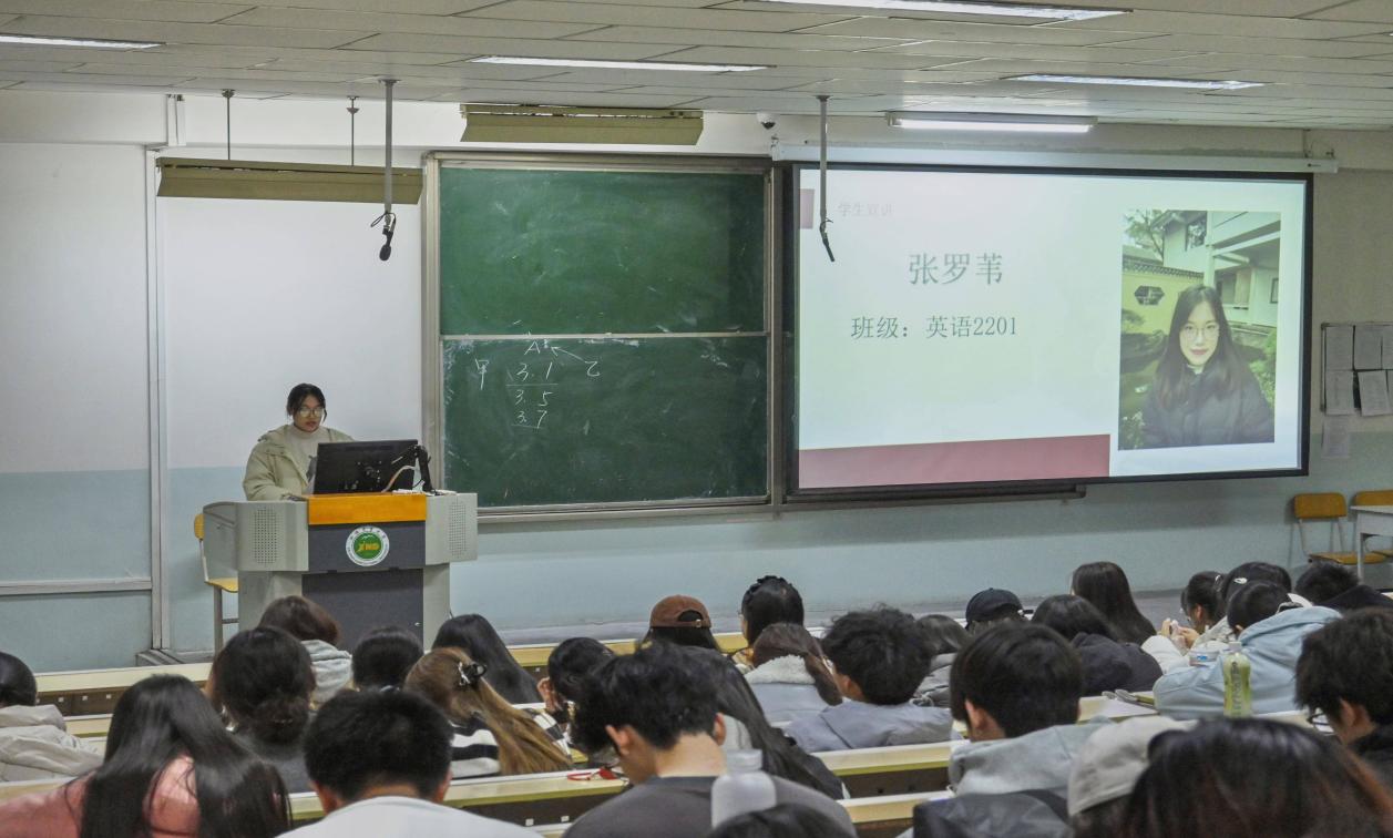 本次宣讲邀请到了三位优秀的学生代表分享备考心得。第一位是来自英语2202班的王曦结合自身备考经历,提供了拆解听力、阅读模块的提速技巧;第二位来自英语2201班的张罗苇则建议同学们聚焦写作、翻译的得分要点,并分享了素材积累与逻辑搭建的方法;最后一位来自英语2301