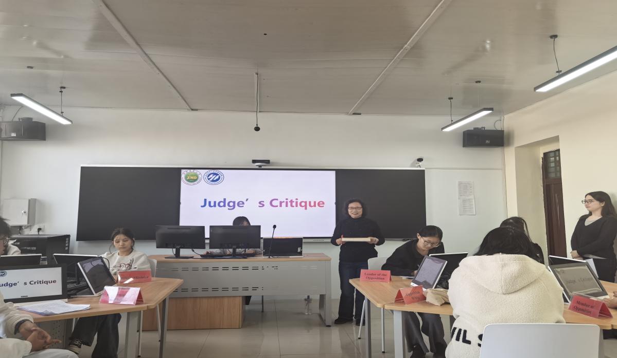 为深化课程思政建设,创新教学模式,提升学生的批判性思维能力、跨文化沟通素养与团队协作精神,lol电竞比分网 高级英语课程组于2025年11月12日在电竞比分 语言实训室成功举办了一场别开生面的英国议会制(British Parliamentary Style)英语辩论赛。本次活动作为《高级英语》课程重要的实践教学环节,将语言技能训练与思政育人目标有机融合,取得了显著成效。